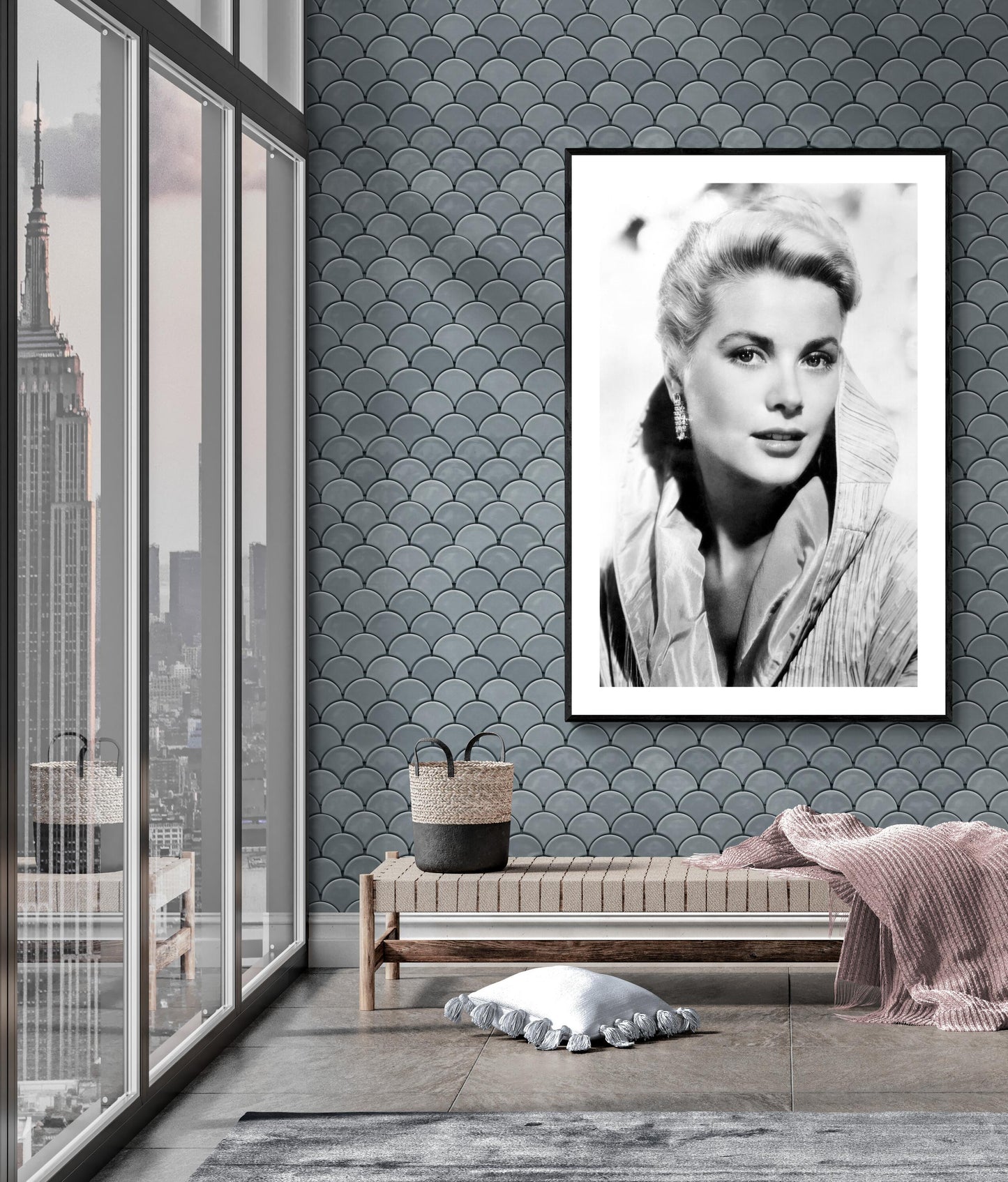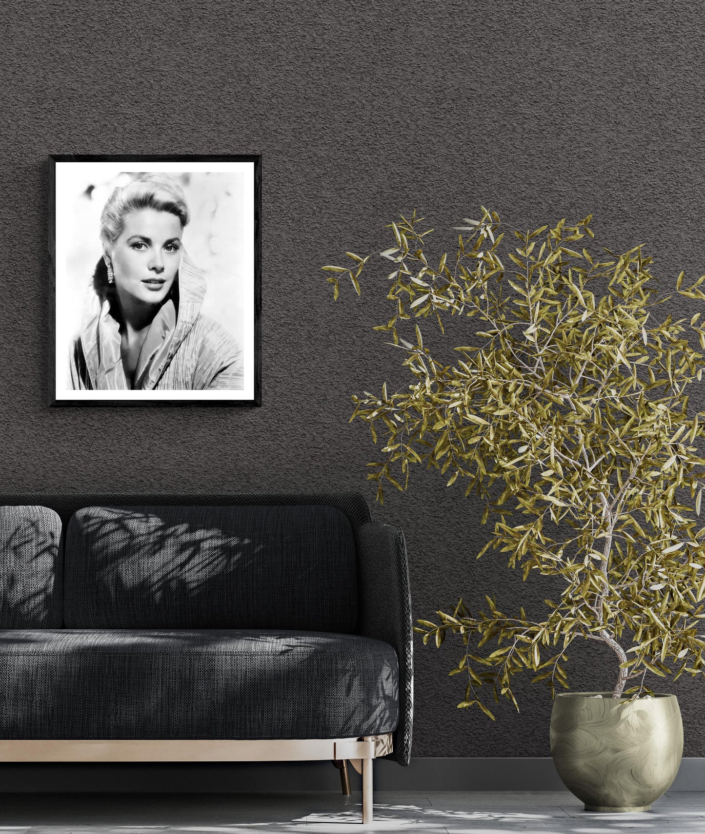 Ce portrait en noir et blanc présente l'actrice Grace Kelly dans un portrait élégant et époustouflant de la tête et des épaules, vers 1942.
