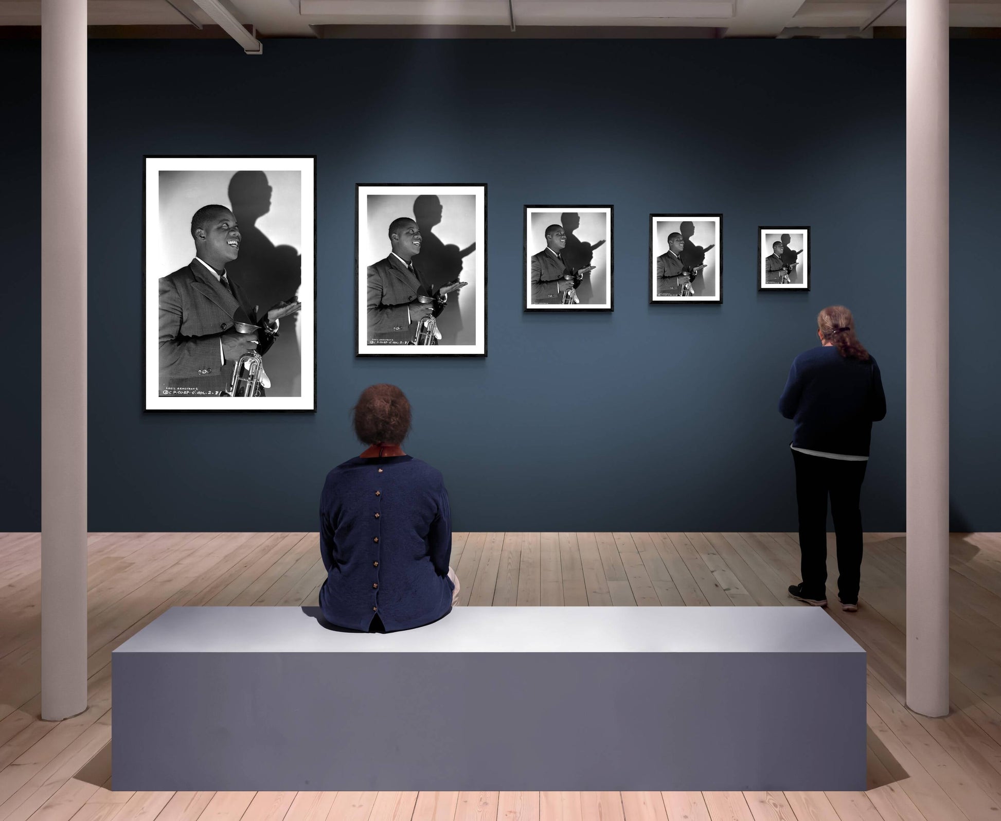 Superbe cliché artistique du musicien Louis Armstrong et de son ombre.