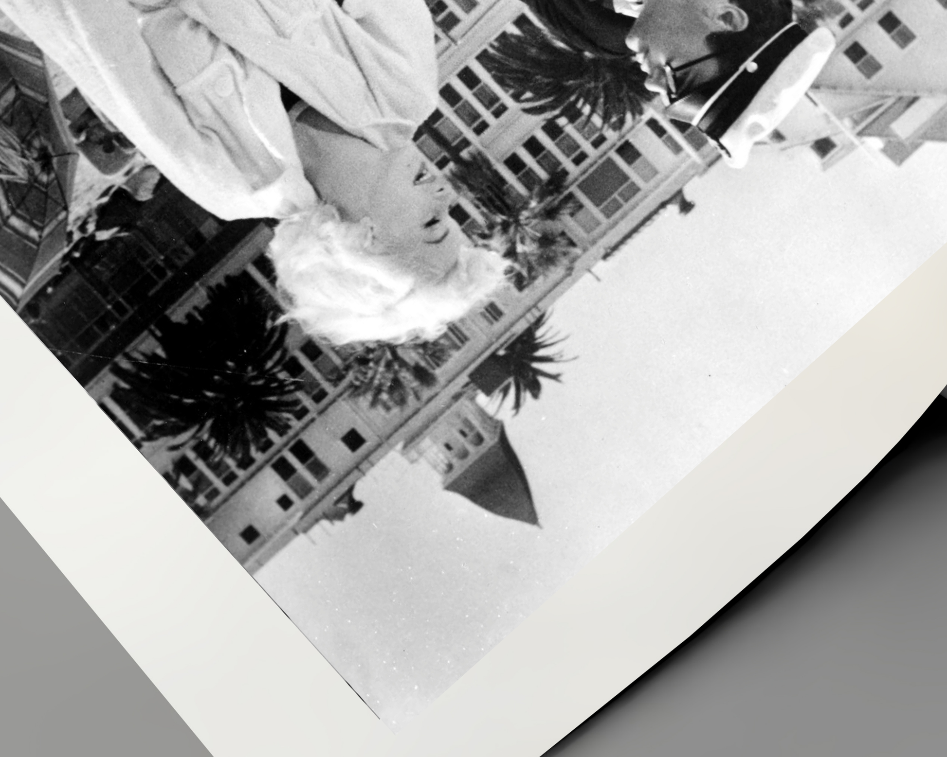 This black and white photo features Marilyn Monroe and Tony Curtis on the set for “Some Like it Hot”, circa 1959.