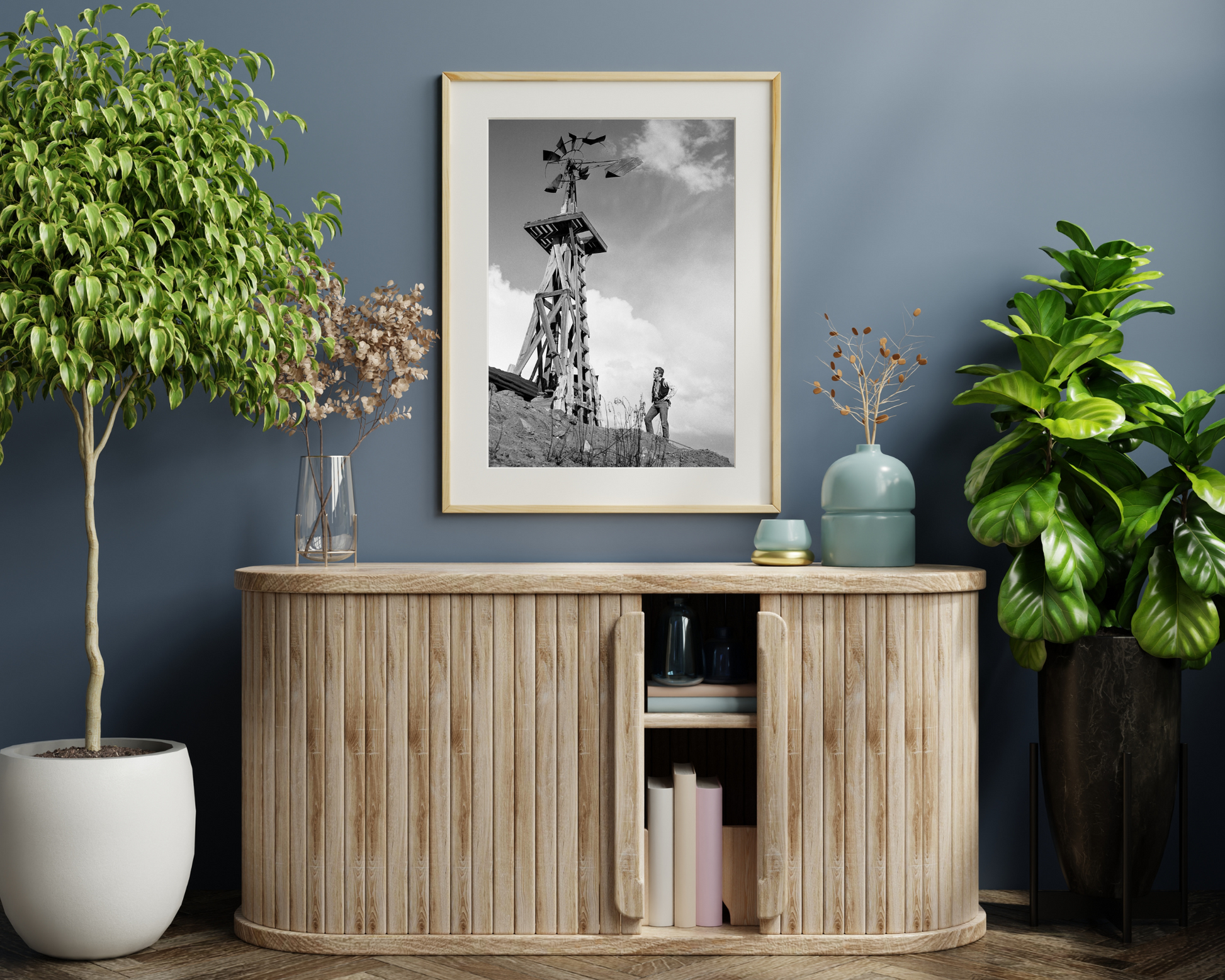 This atmospheric black and white portrait features actor James Dean in his starring role for the film "Giant", 1955.