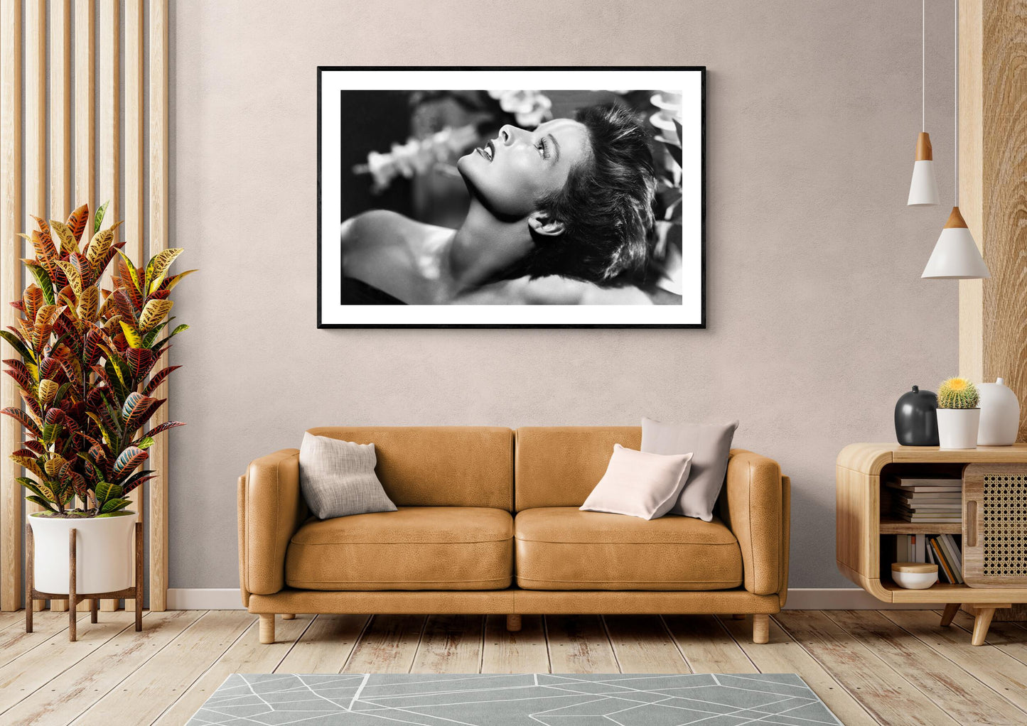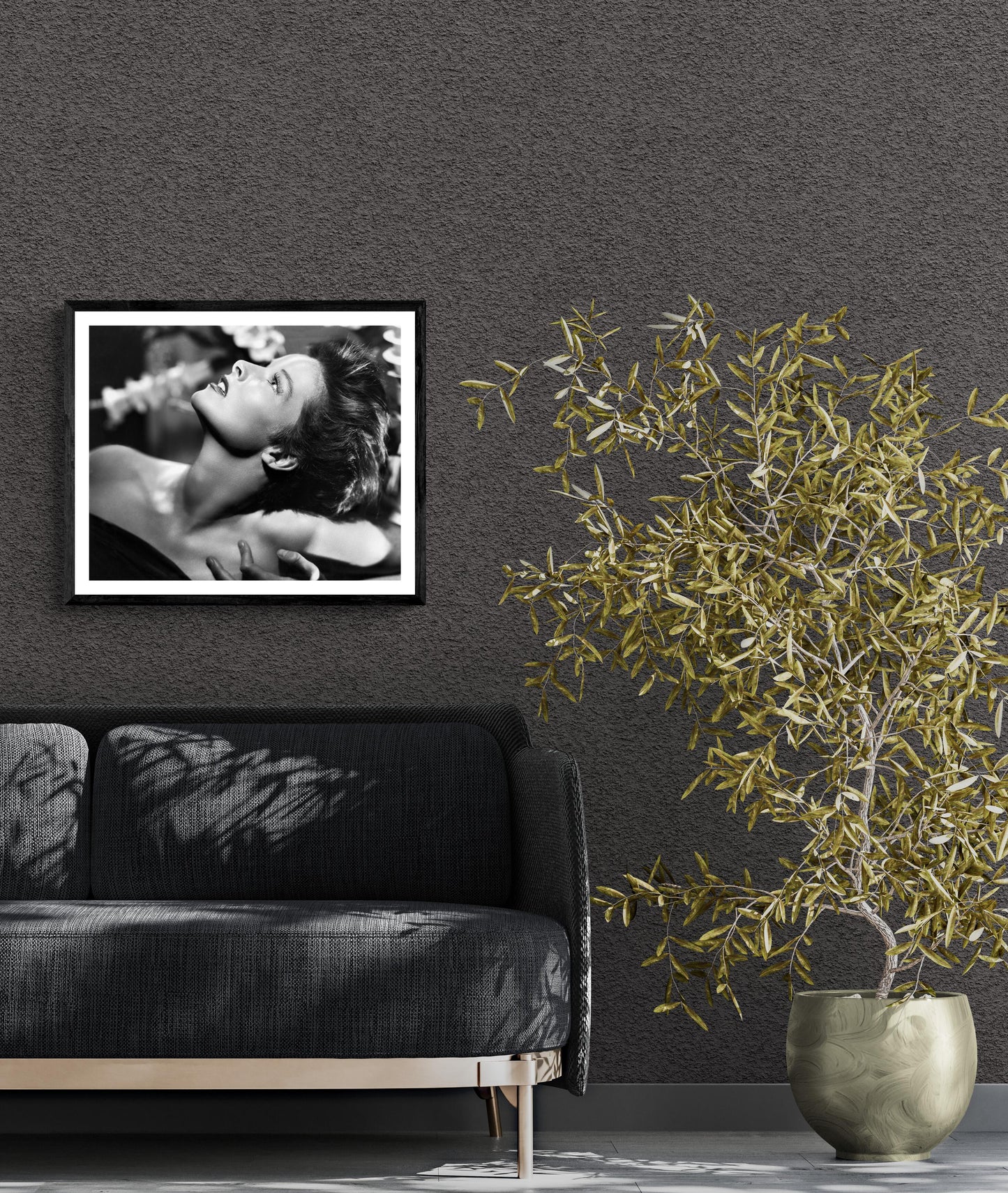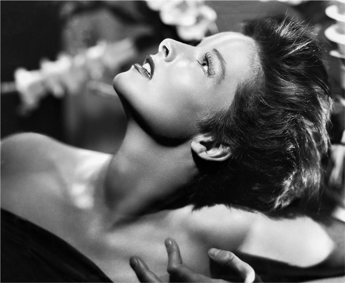 Lovely glamour portrait of the great Katherine Hepburn looking upward.