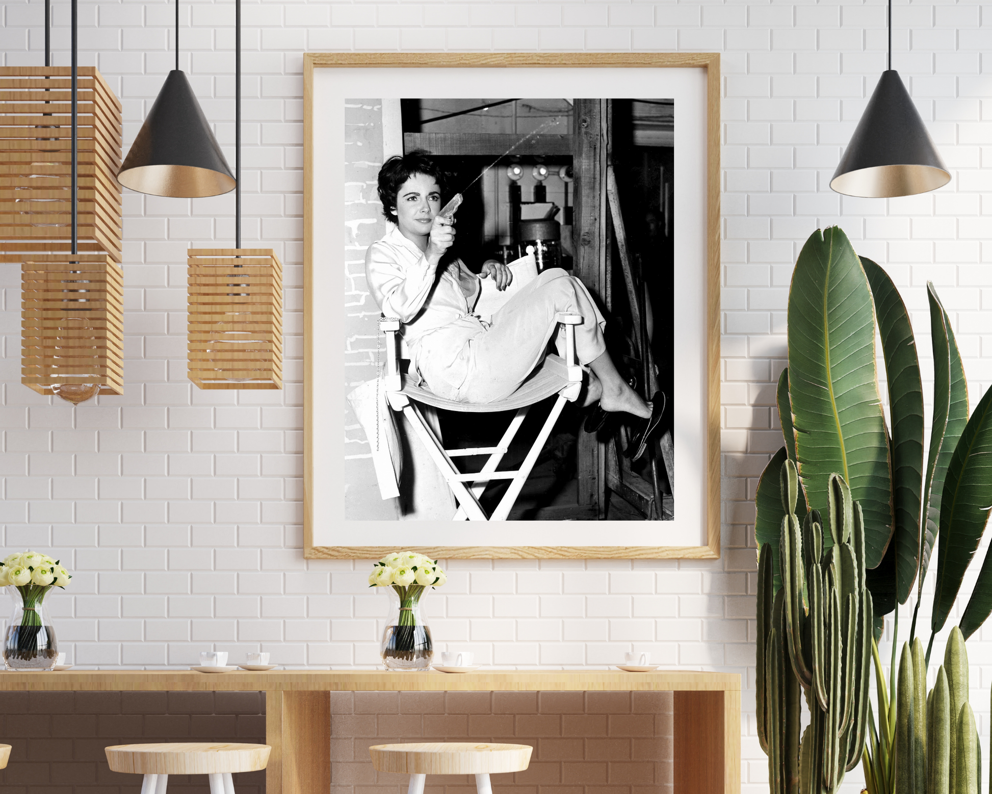 Liz Taylor Shooting Water Gun on the Set