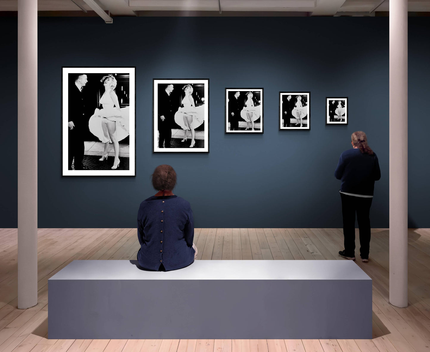 Black and white action shot and iconic image of Marilyn Monroe and Billy Wilder on the set of "The Seven Year Itch"