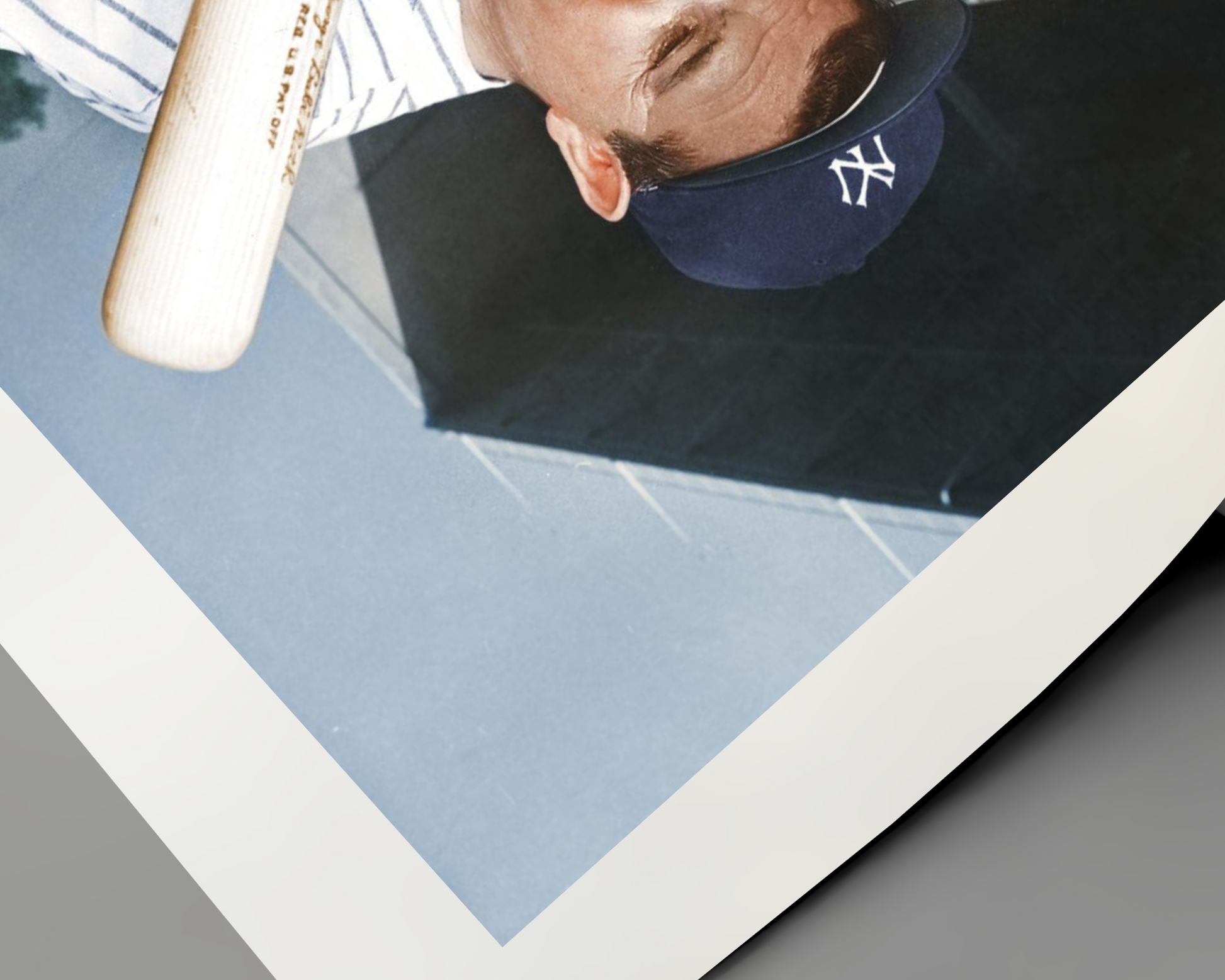 Awesome artistically recolored capture of Babe Ruth and Gary Cooper posed smiling in baseball uniforms for their roles in "Pride of the Yankees", circa 1942.